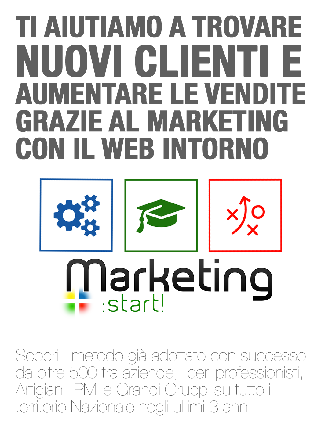 Il metodo Marketing:Start! è già stato adottato con successo da oltre 500 tra aziende, liberi professionisti, artigiani, PMI e Grandi Gruppi su tutto il territorio Nazionale negli ultimi 3 anni.